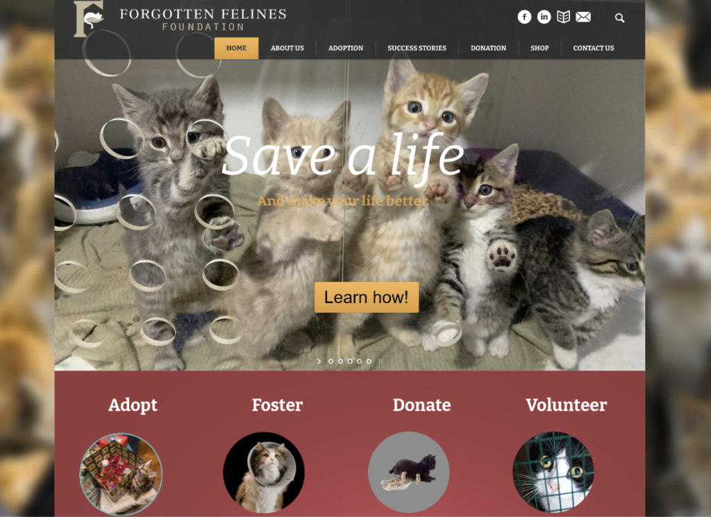 Forgotten Felines Foundation is a registered Charity to manage Cat colonies and help to adopt found cats out. The Project include the Webdesign, Integration of Third Party Solutions like Paypal, Stripe and others and create a Campaign Tool for funding of projects.